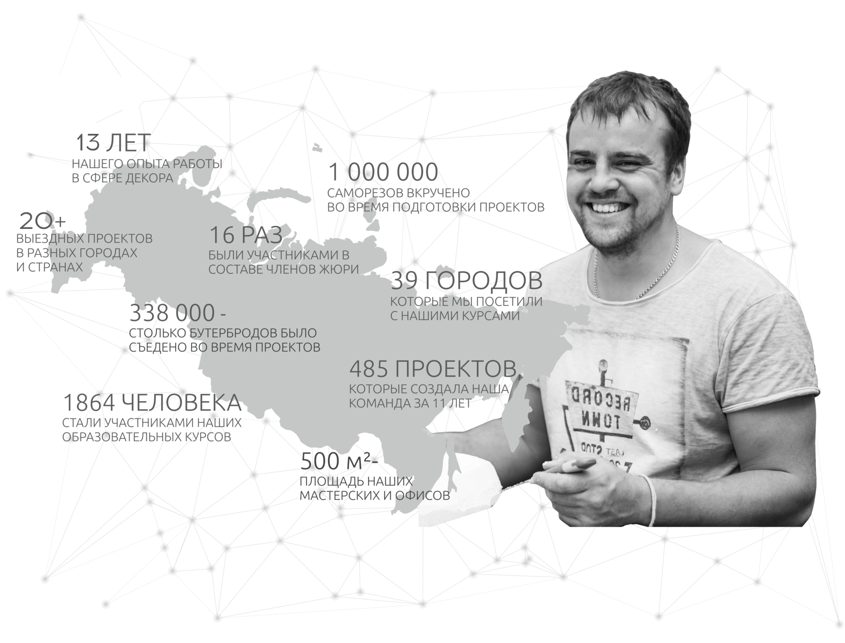 Опыт владимира составляет более 13 лет. ИМ было создано множество нововведений и разработок, которые помогли упростить производство и монтаж декораций.